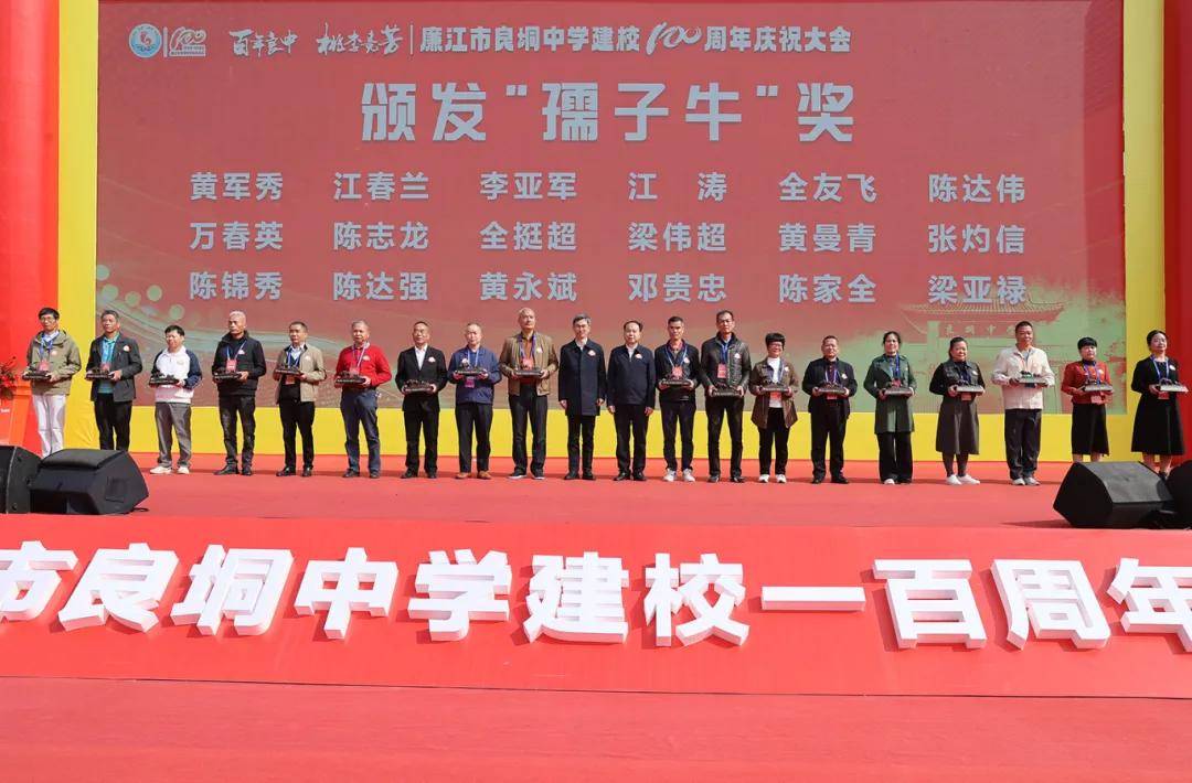 现场颁发廉江市良垌中学“立德树人”奖;颁发执教30年以上的“孺子牛”奖;举行廉江市良垌镇良中奖学助学促进会授牌仪式及颁发荣誉牌匾;举行良垌镇良中奖学助学促进会捐赠仪式。截止今天,良垌中学收到捐赠现金240多万,赠物价值超30万。