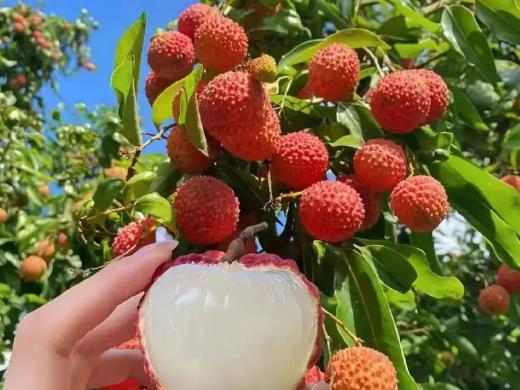 近期,廉江市良垌镇荔枝陆续成熟上市,漫步各荔枝种植园,漫山遍野的荔枝树挂满一簇簇沉甸甸的果实。果农们伴随着丰收的喜悦,穿梭在果林